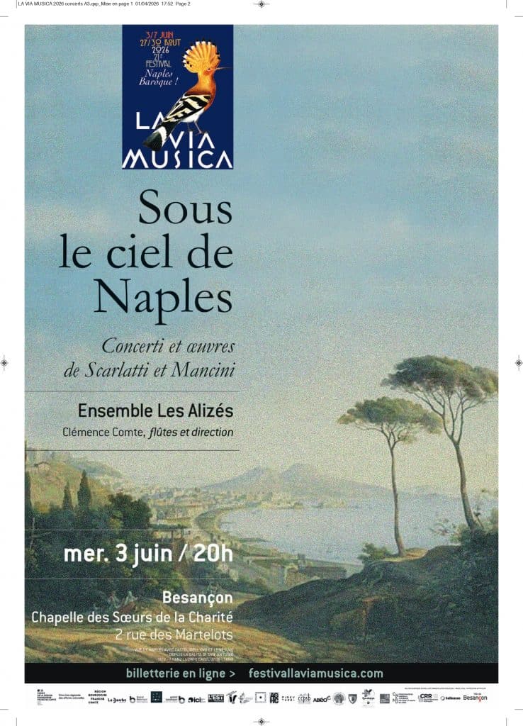 En faisant dialoguer ces deux territoires, La Via Musica 2026 explore une Naples vue depuis Besançon, et une Besançon ouverte sur la Méditerranée : un voyage musical où l’histoire sociale éclaire les répertoires, où la musique devient mémoire vivante, et où l’art retrouve sa vocation première — communiquer et partager nos sentiments les plus profonds.